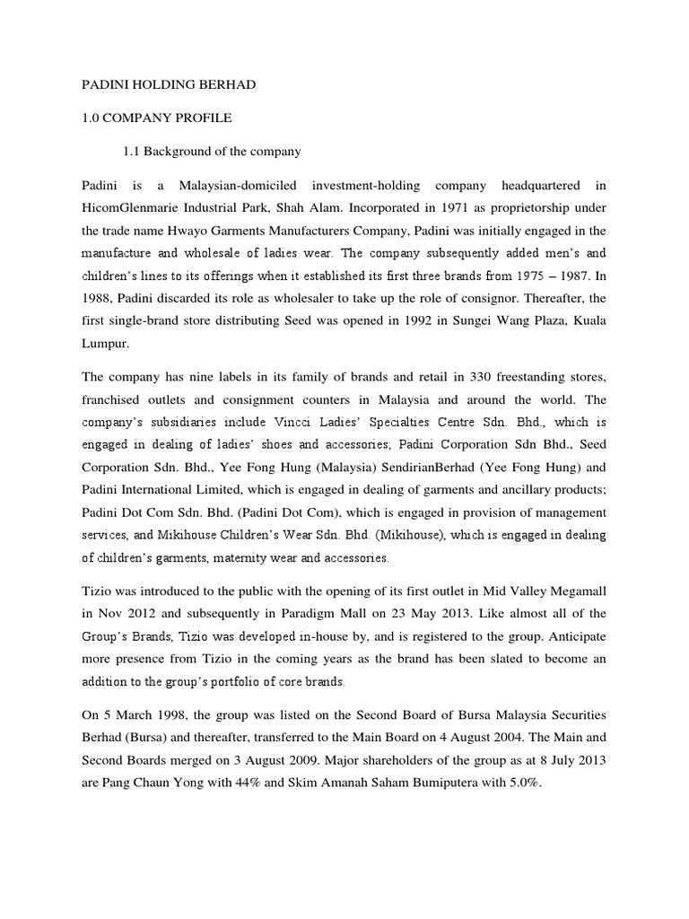 Padini yang terlibat dalam pengeluaran dan pemasaran pakaian dan aksesori adalah syarikat senaraian awam yang semakin berkembang maju hasil kecekapan pengurusannya. Padini holdings berhad (détaillant habillement et accessoires). Yong married first name pang. Currently, pang chaun yong occupies the position of managing director & director at padini holdings bhd. After finishing secondary school, yong joined a textile merchant in singapore.